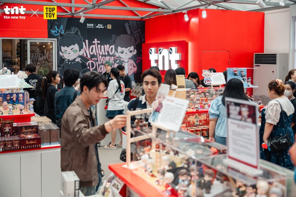 กรุงเทพมหานคร – tnt (ทีเอ็นที) แบรนด์อาร์ตทอยหน้าใหม่จากประเทศจีน สร้างปรากฏการณ์สะเทือนวงการของเล่นไทยอย่างยิ่งใหญ่ในการเปิดตัวครั้งแรกสุดสัปดาห์ที่ผ่านมา โดยร่วมมือกับ TOPTOY (ท็อปทอย) ร้านมัลติแบรนด์ของเล่นชื่อดัง จัดกิจกรรมแฟลชอีเวนต์ “Rayan Born to Explore” ที่ไม่เพียงแต่ดึงดูดนักสะสมและผู้บริโภคหลายพันคนให้มาต่อคิวรอซื้อสินค้าอย่างล้นหลาม แต่ยังได้เชิญสองนักแสดงหนุ่มชื่อดังของไทยอย่าง ฟอส และ บุ๊ค มาร่วมงานอย่างใกล้ชิด นับเป็นก้าวแรกที่สำคัญในการขยายตลาดสู่ภูมิภาคเอเชียตะวันออกเฉียงใต้ และสร้างความสัมพันธ์ที่แน่นแฟ้นกับฐานแฟนคลับในท้องถิ่น