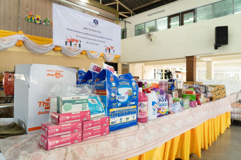 Zhongzhao) กรรมการบริษัท ไทย ฟินเทค จำกัด พร้อมด้วยคณะผู้บริหารและพนักงาน ร่วมมอบสิ่งของจำเป็น เวชภัณฑ์ และอาหารกลางวันให้กับเด็ก ๆ ที่ สถานคุ้มครองและพัฒนาคนพิการบ้านนนทภูมิ และ บ้านเฟื่องฟ้า จังหวัดนนทบุรี ซึ่งดูแลเด็กพิการทางร่างกาย สติปัญญา และการเรียนรู้