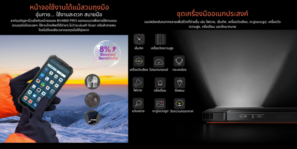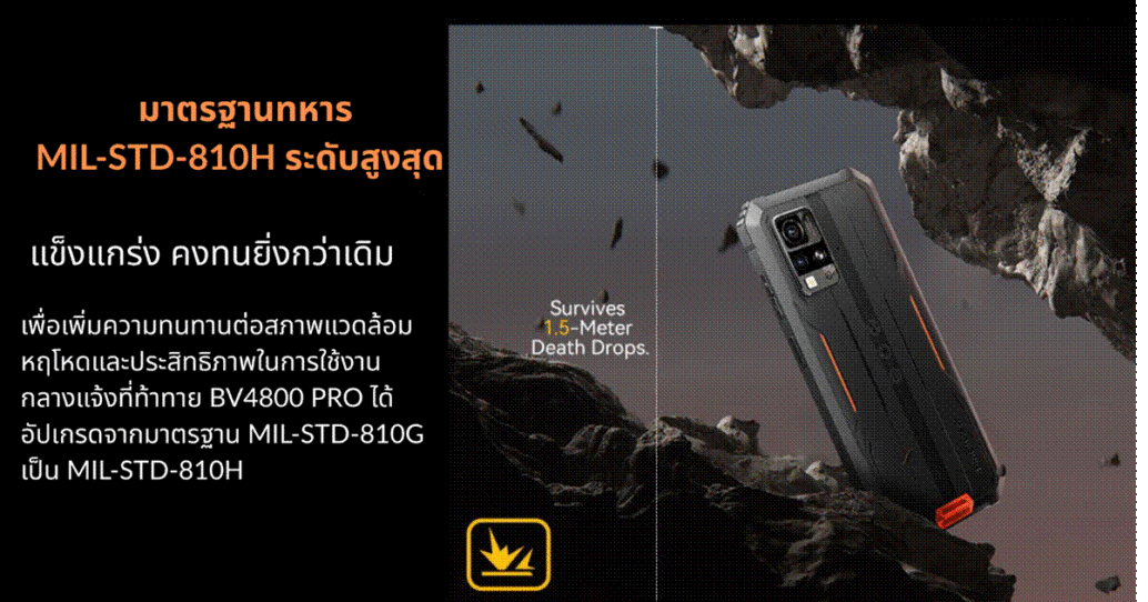 ลองจินตนาการว่าถ้าคุณกำลังวิ่งงานไรเดอร์ตอนฝนตก มือเปียกแต่ยังต้องเปิดแผนที่ หรือทำงานอยู่ไซต์ก่อสร้างแล้วมือถือเผลอตกพื้นปูน ถ้าเป็นมือถือทั่วไปคงจบข่าว แต่ถ้าเป็น BV4800 Pro แค่หยิบขึ้นมา ปัดฝุ่นนิดหน่อย ก็ใช้งานต่อได้แล้ว นี่แหละคือเสน่ห์ของมือถือสายลุย
