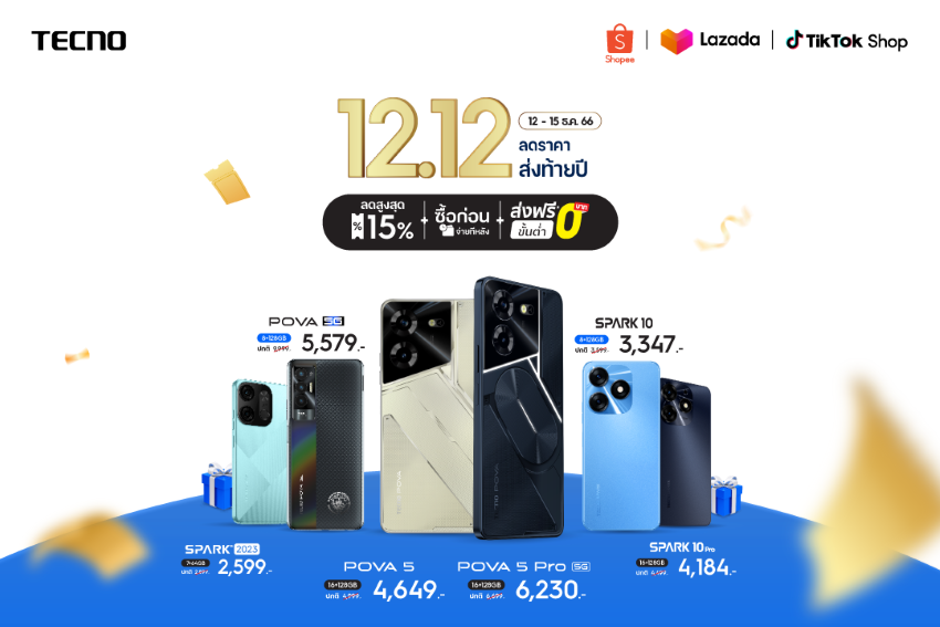 สเปกโหด ตอบโจทย์สายเกมขนาดนี้ ใครมันจะไปอดใจไหว ! จัดเลยไม่ต้องรอ เพราะปลายปีแบบนี้ TECNO Mobile จัดโปรให้คุ้มกว่าเดิม กับโปรโมชั่นลดสนั่นต้อนรับ 12.12 ให้คุณเป็นเจ้าของ POVA 5 Series ได้ในราคาสุดพิเศษ อัดแน่นด้วยสเปกคุณภาพ คุ้มค่าทุกบัดเจ็ต อุ่นใจใช้งานได้ยาวๆ รับประกันนานสูงสุด 13 เดือน พร้อมการดูแลจากศูนย์บริการหลังการขาย Carlcare Service ทั่วประเทศ ให้บริการรับ-ส่งซ่อมเครื่องถึงหน้าบ้านฟรี ! ไม่มีค่าใช้จ่าย